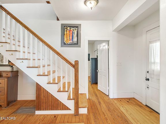 Step into a piece of history with this charming and character-filled 4-bedroom, 2-bathroom home, built in 1905, the same year Lenoir City was incorporated! This delightful property is nestled in a neighborhood rich in history, with this particular house originally owned and built by the Scarborough family. This home offers pine wood floors, meticulously restored in one of the upstairs bedrooms, adding warmth and elegance throughout. Cozy nooks built into the house provide the perfect spots for book lovers to display their collections. The kitchen and bathrooms have been tastefully updated to meet contemporary standards, offering both style and functionality. Enjoy your mornings and evenings on the spacious covered front porch, a perfect setting for relaxing or entertaining guests. The property boasts a vibrant and well-maintained yard, featuring seasonal perennial flowers that add color and charm year-round. The pecan tree behind the barn is a standout feature, over 150 years old and older than the entire neighborhood. Nestled in a festive community, you'll love the lively atmosphere, especially during the holidays. Owners will appreciate the friendly neighbors and the easy access to nearby greenways and parks, perfect for leisurely walks. The all-seasons utility room is a bright and airy space, ideal for enjoying fresh air with the windows open. A standout feature of this home is the large shed in the backyard, fully wired for electricity and equipped with a full workshop and loft. This versatile space can be transformed into a hobby area, studio, or additional storage. Covered off-street parking is a rare find in this neighborhood, providing convenience and protection for your vehicle. This wonderful home offers a unique opportunity to enjoy every season in a special setting. Don't miss the chance to make it yours - it's truly a one-of-a-kind property that is meant to be cherished and we hope that's you!