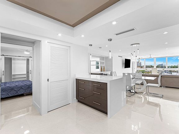 Location, Views, and Brand NEW! Completely renovated with high end, luxurious finishes. This open concept 2 bed/2 bath condo offers 32'' tile floor throughout; quartz countertops, backsplash, and waterfall edges; LG stainless appliances; impact windows; new A/C and water heater; rain and handheld shower heads; free standing tub; square tiled shower drains; linear vent covers; custom built-in closets; raised/floating kitchen ceiling; LED lights throughout; sensor lights in bathroom, closets, and cabinets; and automatic blinds. The SE/SW exposure fills the space with natural light. Private entrance to unit and easy access to covered parking spot. Close to PBI airport & world-class shopping, dining, golf, fishing, and much more. Next to Nautilus 220 Luxe Waterfront Residences.