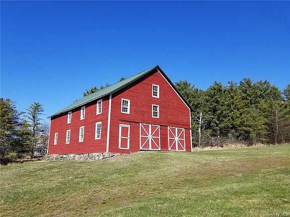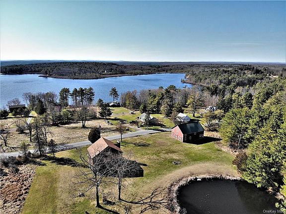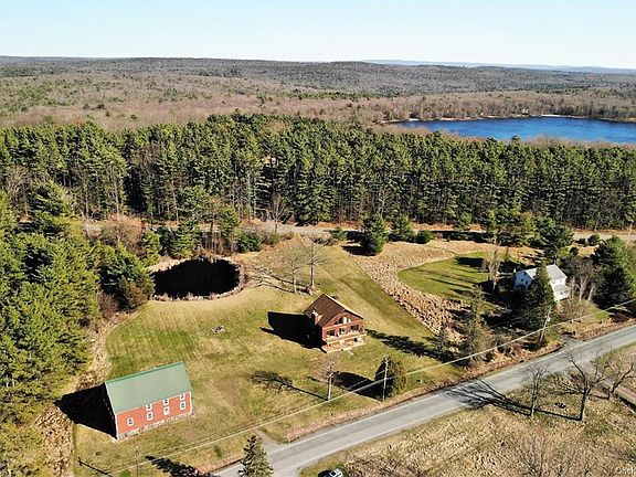 Fabulous contemporary "lake" house is paired with a century old rustic barn on over 4 acres of property, with pond and spectacular lake views. Plenty of room to play on your expansive yard. Meander down to your dock on Highland Lake, a 250 acre motorboat lake, just across the road. Home is 3 levels with over 3000 SF of living space. Front door opens to inviting entrance foyer. MBR, 2 additional BR's and 2 full baths are also on this main level. Master suite features fireplace, walk-in closet, private bath w/ jet tub and shower. Stairway to "Heaven" leads to the second floor and the most amazing great room! Lots of glass, fireplace, wood floors, sliders to deck in front and rear, dramatic designer kitchen, dining area, and another full bath! Fun spiral staircase leads up another level to open loft with storage space; perfect for family/play room and guests. Awesome barn is a huge plus with room for toys/ workspace. Make memories that will last a lifetime in this very unique offering.