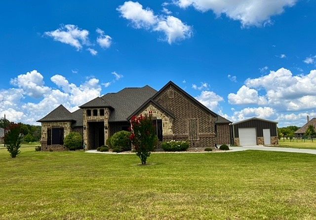 One entrance in and out subdivision of Lavender Estates. No HOA! Located just minutes from Springtown High School and Goshen Creek Elementary. Built with the highest finishings from the wood-look tile floors to the wall texture. The open concept living area includes vaulted ceilings with custom stained wood beams and opens to knotty alder cabinetry with granite countertops and a free-standing island perfectly serves as a breakfast bar to complete the kitchen. Originally constructed as a 4 bedroom, the current owner opened up the living area making this a three-bedroom; however, it can easily be converted back to 4 bedrooms. Brand new carpeting in the primary bedroom. Outside, enjoy a covered patio with exterior fireplace perfect for outdoor entertaining year around. The insulated 20 x 22 shop with 220 amp service.