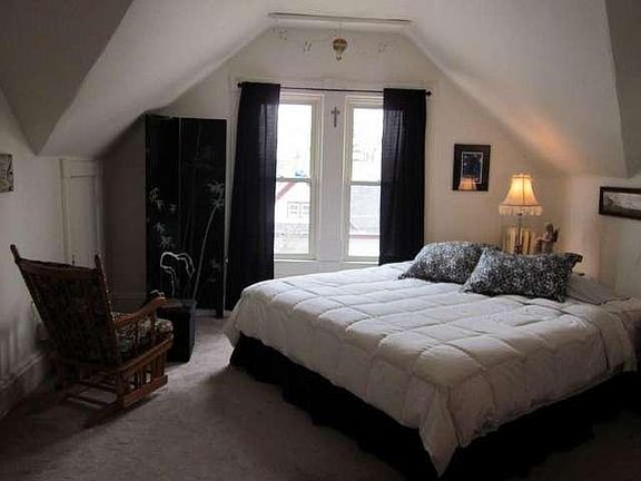Victorian Beauty with outstanding view, unique features such as original woodwork, stained glass window turret & two great sitting porches to relax on. Spacious main floor includes large eat in kitchen, spacious dinning room, large living room and bonus rec room that was used as a theater room. Home as a private fenced large backyard leading to the 2.5 car garage that features a storage loft. Updates include windows, vinyl siding, gutters, roof electrical and plumbing.