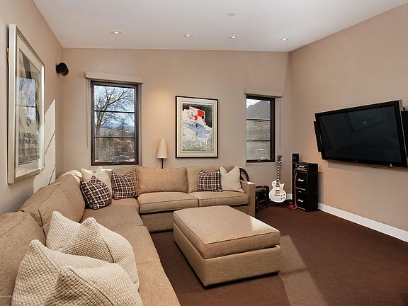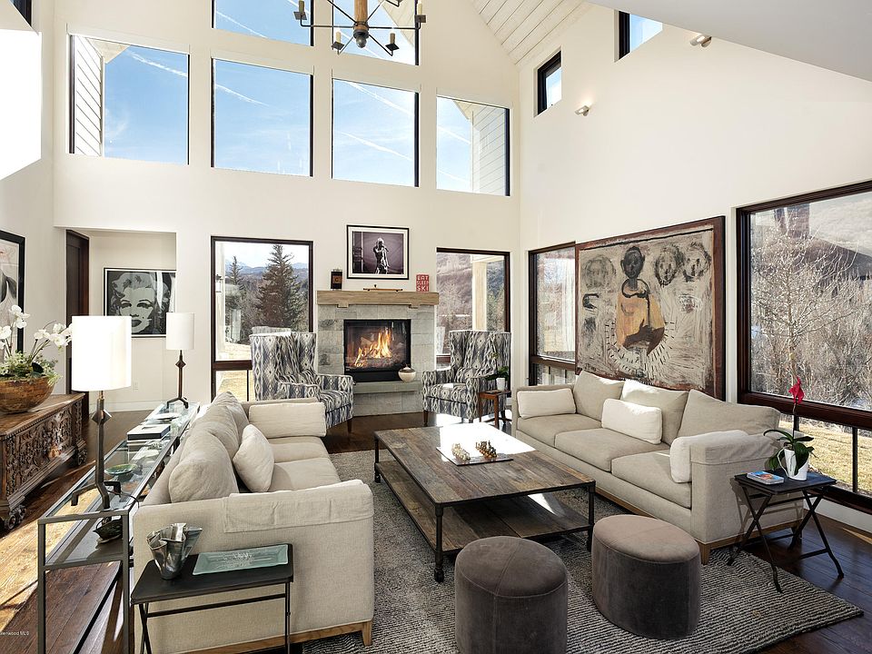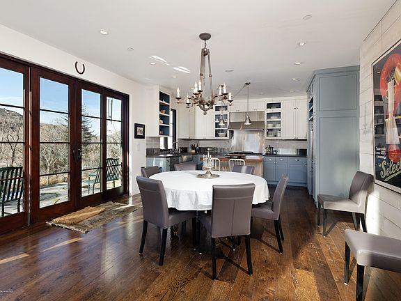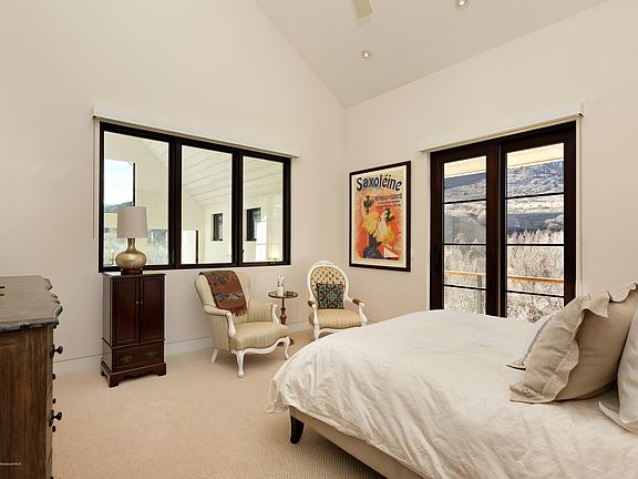 This elegant home in Woody Creek is situated on two acres of land just above the Roaring Fork river. Enjoy mountain and river views, a large yard, new construction, beautiful finishes and furnishings, three bedrooms en suite, two offices, a media room, and a two-car garage.