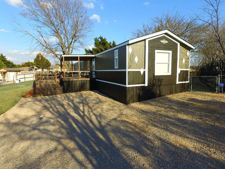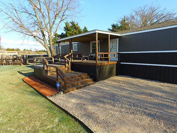This home was completely remodeled inside and out March 2018, it has a beautiful view of one of the 4 private lakes. In the gated community of 5-lakes. This is a beautiful 18x80 Solitaire mobile home fully skirted with steel. It has 3 bedrooms and 2 bath full bathrooms with a spacious kitchen with a island and skylight.The large living room has a unbeatable view of the private fishing lake. The house has been completely remodeled inside and out! It has 3/4 inch plywood floors and 1/2 inch thick tape and textured walls! Brand new stainless steel kitchen appliances and lightly used Maytag washer and whirlpool dryer. Fully furnished with complementary accessories and a new area rug. Master bed has queen bed, and the 2nd bedroom and antique full size bed. The 3rd bedroom has a twin day bed. Living room is furnished with a red leather love seat and rocker recliner, LCD TV, electric fireplace heater. The dining area has a beautiful handcrafted breakfast table that doubles as a game table. The house also has a ADT Security System with smoke detector. Large lake view covered front deck with 2 tiered deck steps. Fenced in back yard with metal storage building. Front yard is landscaped with flower beds and rocks. Large driveway and parking area. This house is like new inside and out and won’t last long. The lot is steps away from the fishing lake and fishing dock, The Bait Box general store and storage facilities. Five Lakes is a patrolled gated golf cart community! With swimming, sandy beach with party pavilion, community center, playground, basketball court, volleyball court, kayaking! Also only 2 miles from boat ramp at Arbuckle Lake and 5 miles from downtown Sulphur and the Chicasaw National Recreational Area! Asking $86k Showing by appointment Contact Allen Hill for information and gate access 405-412-3181