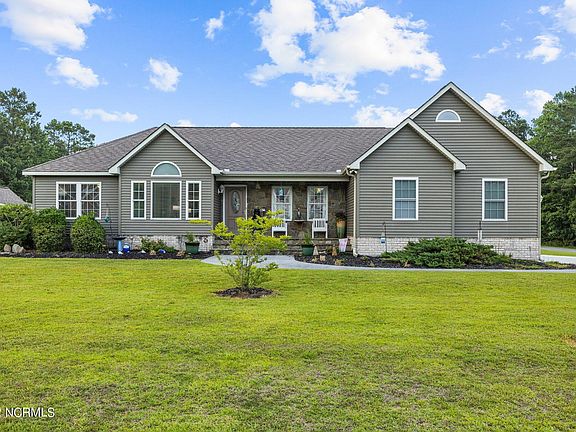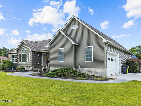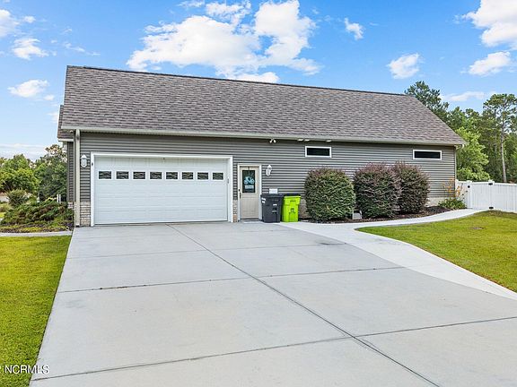 Beautiful Custom Home situated in the Highly Sought After Water Front Community of White Oak Crossing. This 3 BR, 2.5 Bath home with a den/office features Pella doors, vaulted ceilings, new carpet, butlers pantry, washer/dryer, custom built-in Cabinetry in living room with gas fireplace insert, master bathroom with walk-in corner shower and large jetted soaking tub, large fully-fenced in backyard with screened in back porch, storage shed/workshop and So Much More! The neighborhood amenities include a docks and boat ramp with deep water access, boat storage and a swimming pool. Conveniently located between Camp Lejeune and MCAS Cherry Point, and only minutes to local beaches.