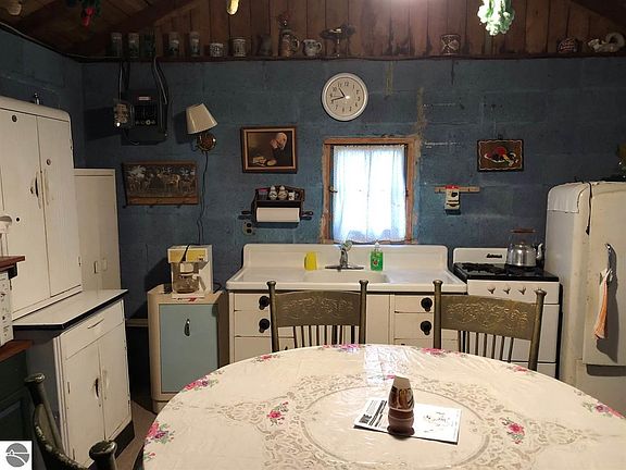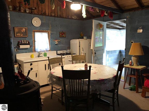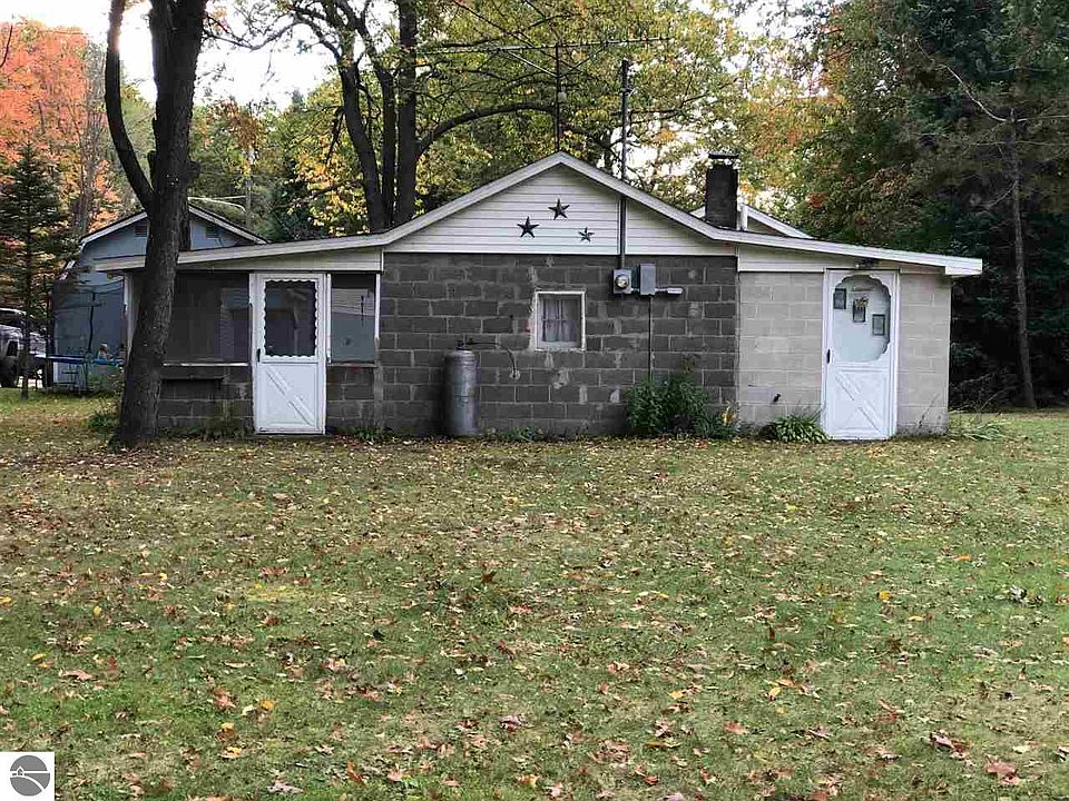Block cottage built in 1952 with one large bunk room, stove, refrigerator and wood stove. Bath with shower, screened in porch on a corner lot and just down the road from the public beach to all sports Silver Lake.