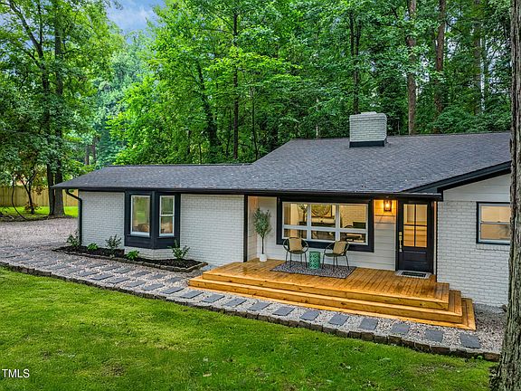Welcome to a Bright, Modern Retreat Surrounded by Nature! Nestled on a spacious 1.06 acre lot in the sought-after Longview Gardens neighborhood, this charming split level home offers both privacy and convenience just minutes from downtown Raleigh. Enjoy the tranquiliity of this peaceful retreat, while being only 2.5 miles from the city center. Step into a home that effortlessly blends contemporary elegance with the warmth of natural surroundings. This stunning residence is filled with an abundance of windows, bathing every room in sunlight and offering picturesque views of the lush, wooded landscape. Inside you will find timeless, sophisticated hardwood flooring, two cozy fireplaces, and a brand new kitchen designed to impress, featuring sleek Carrera quartz waterfall countertops that also extend up the walls behind the vented hood, brand new soft close cabinets and drawers, gold hardware, and an island perfect for casual meals. Escape to the owner's suite where you are perched among the trees with a massive picture window overlooking the forest. The uniquely designed ensuite bath maximizes space and puts the FUN in functionality. Boasting two shower heads, one a rainshower and six body jets, this spa like bath features glazed, green horizontal ceramic tiles floor to ceiling, mimicking the forest outside seen from the shower! The downstairs features a second, separate living quarters complete with a den, the third bedroom/office/workout room, a full bath and the laundry room. The three tiered deck is thoughtfully integrated into the bakyard, with each tier offering its own unique vantage point and purpose. There is a path from the backyard that winds up and through the forest, providing a sense of privacy and a natural extension into the bakyard, perfect for quiet walks or outdoor gatherings. A property with NO HOA on 1.06 acres with privacy and onvenience is hard to find inside the beltline and 301 Lord Berkley has it all!