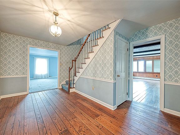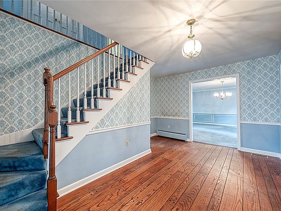This lovingly maintained home with over 3000SF of grand beauty has been owned by only the family that custom built it. The spacious rooms and lot are welcoming and homey. Red oak floors are protected under the carpet in the bedrooms, dining room and stairs. Oak planks in the foyer and family room, too. The first floor boosts a grand entry, formal dining room, large eat-in kitchen, mud room/laundry room, formal living room and family room. The second floor features 4 spacious bedrooms with generous closet space and two full bathrooms. The gigantic basement begs for a game room to be fully finished and offers ample storage. And there is a storage shed too! Feature galore including 6 zone heating, gutter guards, plaster walls, french drain, over-sized heated garage, and Pella windows. This one is ready for you to move right in and make it your own.
