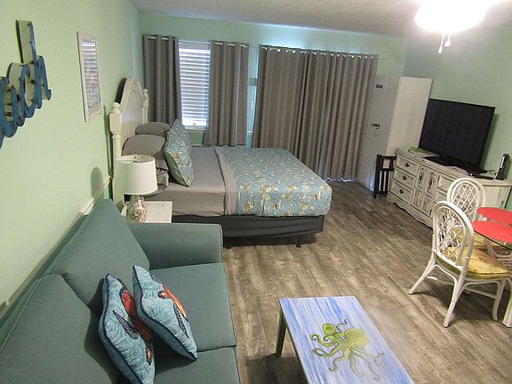 Spacious studio condo that is just across the street from the Sandy White Beach. Fully furnished ground floor condo is a 1/2 mile from Pier Park, restaurants and shopping. Situated on Lullwater Lake, this gem is great rental unit or a perfect weekend get-a-way. The back sliding doors open to a nice patio area that is just steps from the pool. Buyers Responsibility to confirm measurements.
