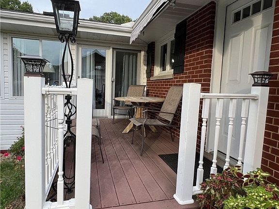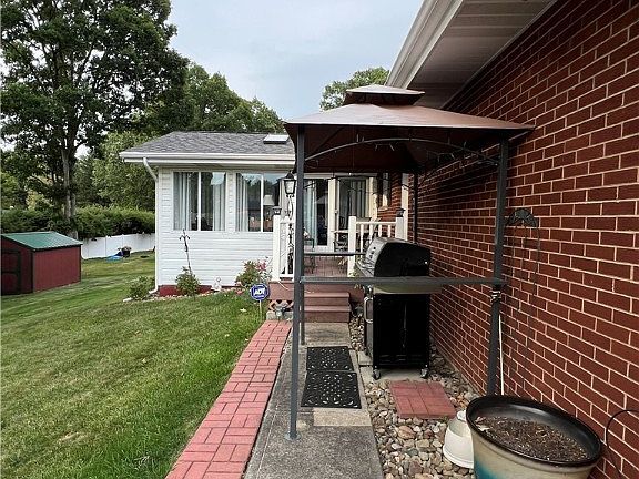 Beautiful all Brick 3 bedroom, 2 Full Bathroom Ranch on a large lot. Some wonderful features are gleaming refinished hardwood floors, Ceramic tile and new Vinyl flooring. Windows have been replaced, A 17X17 Four Season Room with Vaulted Ceiling, Gas Stove, French doors and skylights with blinds. Newer Electric Cooktop Stove and Newer Garbage Disposal (2022), Hot Water Tank (2022), Gas Furnace (2011), Roof (2010), Gas FP in Livingroom, Wood Burning FP in Basement. Full bathroom with flush up toilet in the 26X28 Finished Basement with an additional 18X25 Storage/Furnace Room with lots of built in shelving. Large 25X20 Attached Garage with pull down stairs with storage above. Nice large shed on property. Privacy shrubs in backyard. Rear Deck with Awning. The stake for the property line is on right side of property. Washer & Dryer in basement will stay, Kitchen island stays, Microwave stays, Refrigerator in kitchen does not stay.