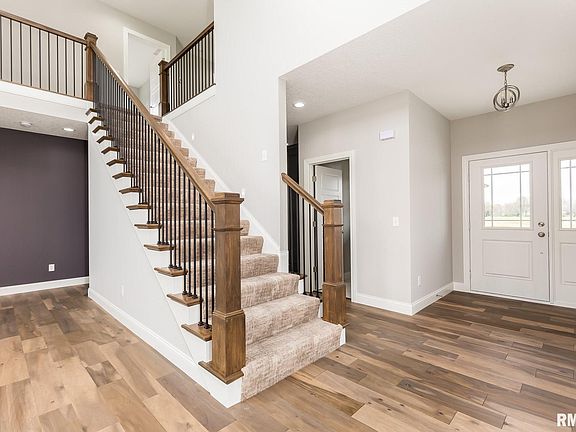 Fantastic 4000+ sq ft floorplan with 18ft great room, window lined fireplace. Gorgeous kitchen with large snack bar, informal dining & walk in pantry. Cute window above cabinets lets in natural light. Tray ceiling and fan with mood lighting accents the awesome first floor master with walk in tiled shower, private tub, & huge walk in closet. Nice mudroom with space for everyone. 3 car garage with rough-in for gas heater. Upstairs boasts 3 large bedrooms, 2 more full baths and a bonus room for hobbies, office or play room and LAUNDRY! What a great way to keep kids dirty clothes upstairs! The basement is to die for with large rec room, the 5th bedroom and 5th bath. Entertain at the wet bar/kitchen with walk out basement. Plenty of storage in this smart home with 2x6 walls & 5 star energy rating. Interior photos are of a similar home. Taxes are LOWER in Riverdale! Buy this home or design your own on another lot. Welcome to a new & exciting community. Owner is licensed RE agent.