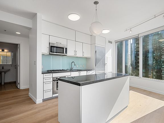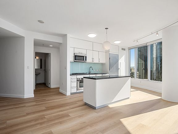 Perched high above the clouds on the 24th floor, this sophisticated 2 bedroom, 2 bathroom luxury home offers elegant living with modern amenities. Dramatic northwest views of downtown San Francisco will captivate you as you enter the graceful living room. The gourmet kitchen features designer cabinets, a gas stove, a dishwasher, and a huge chef's refrigerator. A large kitchen island offers the perfect place to entertain or create your favorite gourmet recipes. The spacious master bedroom features stunning views of downtown San Francisco and a huge walk-in closet. A spa-like bathroom features high-end finishes and a luxurious soaking tub. A formal entry offers abundant storage and in-unit laundry, and 1-car parking. Don't miss this incredible opportunity to live in San Francisco's premier building. *Parking is available for additional fee