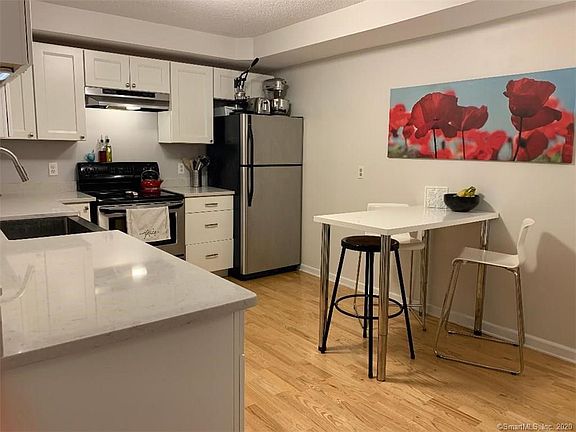 Steps to Ft. Trumbull beach and saturated in natural light, this spacious first-floor 1 BR / 1 BA end unit has been beautifully updated from top to bottom! The large eat-in kitchen boasts new cabinets, farmhouse stainless sink, quartz countertops, and stainless steel appliances. The oversized bedroom has plenty of room for a king-sized bed and desk, a door to the bath, and a massive 6x9 walk-in closet. Off the kitchen is a laundry/storage room which has ample room for beach chairs and bikes. The full-sized washer and dryer were replaced in 2018. All new hardwood flooring in 2016. New HVAC in Sept 2017. The 4-building community is stunning with 50-year vinyl siding installed in 2009. The current owner has prepaid the $3k assessment for parking lot replacement. The unit comes with assigned off-street parking space and ample spaces for visitors. The beach entrance is ?? block away. Close to downtown Milford, Silver Sands State Park, hospital, and train! The buildings in this community did not flood during Sandy or Irene, and FEMA insurance is included in the common fees. This rare unit is one of only three 1 bedroom units in the community which has its own private exterior entrance. The community allows up to 2 cats and 1 dog (with size restriction of less than 20??? at the shoulder and gentle disposition). AGENT RELATED TO SELLERS