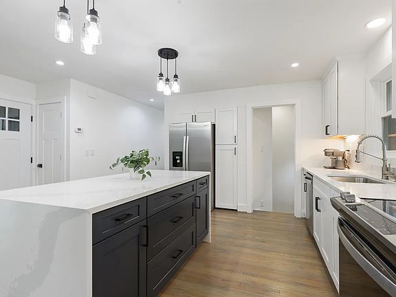 Welcome to this stunning 4-bedroom, 3-bathroom home located in the heart of downtown Raleigh on a desirable corner lot boasting a great view of the Raleigh skyline. This gorgeous property is within minutes of Fayetteville Street District, and the Raleigh Convention Center. This spacious home offers all of the gracious conveniences of modern living inside a beautiful fully renovated 1950's home. As you enter, you are greeted by a gorgeous state-of-the-art kitchen featuring a 7-foot waterfall edge island, quartz countertops, quartz backsplash, and modern stainless-steel appliances. The beautiful dining area adjacent to the kitchen flows seamlessly into the family room, which boasts a cozy fireplace and 5 picture windows that flood the space with natural light. Oak hardwood flooring extends throughout the main living area. The main floor includes two spacious guest rooms and the primary suite, which features panoramic picture windows, an ensuite bath with a large vanity and a soaking tub. Descend to the lower level to find an additional bedroom, a full bath with a walk-in shower, and another stunning living room with a statement fireplace. You will also find ample storage space and a large deck perfect for entertaining. With updates galore, this home offers a unique blend of modern amenities and timeless charm. Don't miss out on the opportunity to rent this gem!