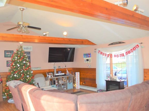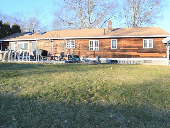 Somerset- Welcome Home to this expansive ranch, consisting of 7 rooms 3-4 bedrooms and 2 baths. A lovely open floor plan awaits from your enormous living room with vaulted ceilings, wood beams, skylights all while offering easy access thru the sliders to the back yard. An open fully applianced kitchen with breakfast bar with easy access to the dining room. Three bedrooms on the main level each with hardwoods and a closet, and a full bath round out the first floor. The lower level has a finished family room with attached bath that could be used as an additional bedroom or an office. 3 zone gas heating system, The deck off the great room is easy access to the outdoor space. You will love the hot tub, patio area, and the above ground pool. Two sheds will remain.