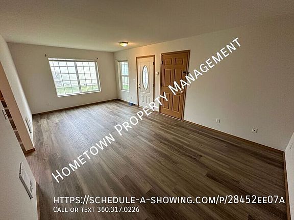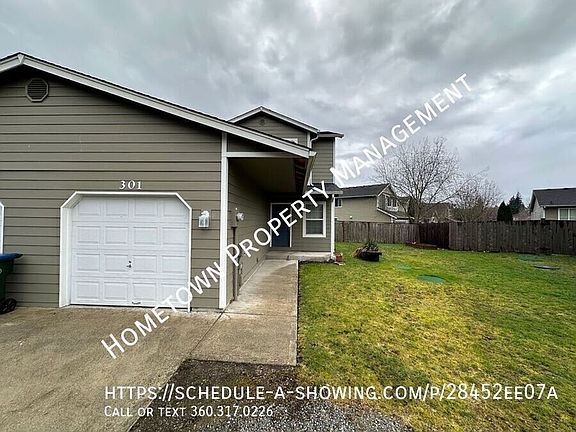 This spacious 3-bedroom, 2.5-bath duplex offers comfort and convenience in a desirable location. Enjoy brand-new laminate flooring in the living, dining, and laundry rooms. The bright living room features a large window, and the kitchen boasts ample storage space. A sliding door leads to a large, fully fenced backyard. Upstairs, the primary bedroom includes a walk-in closet and connected full bathroom with a shower/tub combo. The half-bath features extra cabinet space for added convenience. With a 1-car garage, big front yard, and washer/dryer hookups, this home is ideal. Schedule your showing today! **NO SMOKING**PETS NEGOTIABLE** $35.00 pet rent per month, per pet. 12-month minimum lease. Great Yelm location, close to parks, shopping, and area amenities. 30 min commute to JBLM East gate. Google property address for quickest driving directions from your location. Directions: I-5 South, Exit 116 for Mounts Rd toward Old Nisqually, Turn left onto Mounts Rd SW/Nisqually Rd SW/Old Pacific Hwy SE, Turn left onto Reservation Rd SE, At both traffic circles, take the 2nd exit onto WA-510 E, Keep right to continue toward Yelm Hwy SE, Merge onto Yelm Hwy SE, Turn right onto 1st St S, Turn left onto Mill Rd SE com/l/28452ee07a/301-mill-rd-se-yelm-wa-98597 Please schedule all evening showings by 4:00 PM and all weekend showings by Friday at 4:00 PM. Failure to do so may result in your showing not being authorized. This property is managed and marketed by Hometown Property Management. Fenced Full No Roommates Parking 1 Car Garage Pet Rent $35/Month/Pet Stove/Oven Electric Washer/Dryer Hookups