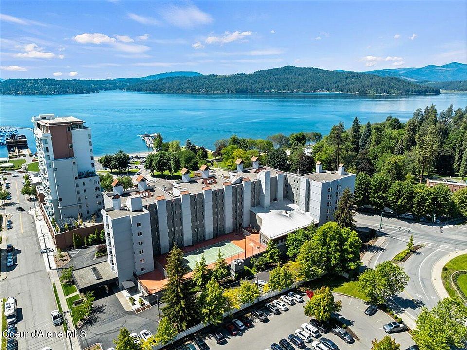 Rarely available, this corner unit offers 1950 square feet, 2 bedrooms, and 2 bathrooms. The condo boasts gorgeous lake views and is ideally located to enjoy all the amenities of beautiful downtown Coeur d'Alene. With unobstructed views of the lake and park, you can fully appreciate the beauty this unit has to offer. The condo has been updated over the years and features all-new GE Profile appliances, which are included. Enjoy end-of-the-hall privacy and easy access to all the lifestyle amenities of this condo community: indoor pool, hot tub/spa, gym, a social area with lake views, billiard room, and tennis courts! For convenience, the condo can come furnished as-is, making it an easy vacation or seasonal retreat. You'll also have two indoor parking spots in the secure garage and additional outdoor parking for guests. The condo community ensures security with measures in place and restricted access for non-owners. Come experience the Northwest Lifestyle today!