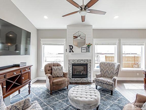 Experience comfortable living in this exquisite home located on a tranquil cul-de-sac in Rigby. Situated on a generous 0.7-acre lot, this home features a modern interior with an open concept living space, vaulted ceilings, stunning hardwood floors, a cozy gas fireplace, and plenty of natural light. The dining room and kitchen offer captivating features such as white staggered cabinetry, subway tiled backsplash, granite countertops, stainless-steel appliances, a farmhouse sink, and a convenient walk-in pantry. The main floor includes a remarkable Primary Suite with a shiplap accent wall, tray ceiling, and ensuite bath featuring a granite double vanity, tiled double head walk-in shower, corner tub, and walk-in closet. Additional main floor features include a laundry room, 2 bedrooms, and a beautifully appointed full tiled bath with granite vanity. The fully finished basement offers a multitude of amenities, including a large theater room, 3 additional bedrooms, full tiled bath with granite, and a versatile flex room. Outdoor entertainment options abound with a spacious yard, private patio, fire pit, and room for a hot tub. With a 3-car attached garage, this residence combines practicality and style plus the INL Bus Stop is just down the street. Come see it TODAY!