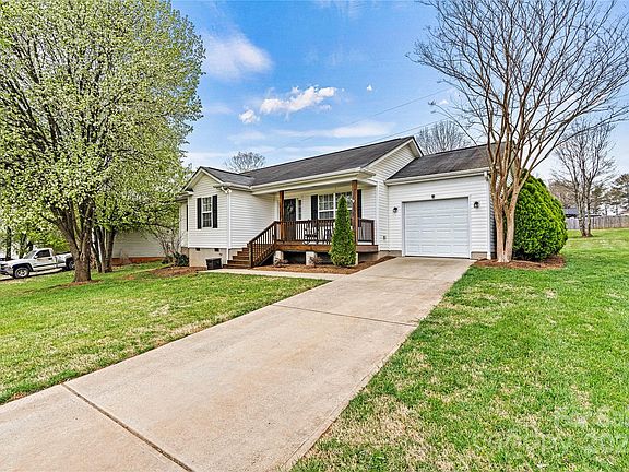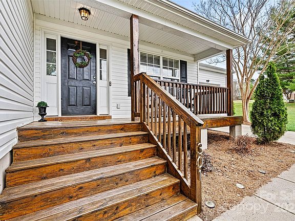 Professional photos now uploaded! This charming Ranch Home is situated in downtown Maiden across street from Maiden Municipal Park. Features include: freshly stained covered front porch perfect for relaxing in rocking chairs looking across street at park. Open floorplan between Kitchen, Living Room with vaulted ceiling and Dining area provides a great flow. Kitchen features plenty of cabinets and walk-in pantry. Back deck overlooks the large backyard. Down the hallway you will find full bathroom, laundry, primary bedroom with tray ceiling and full ensuite bath, and two additional bedrooms. You will love living across street from the park with the splash pad, playgrounds and baseball fields.