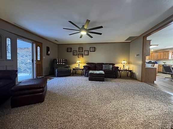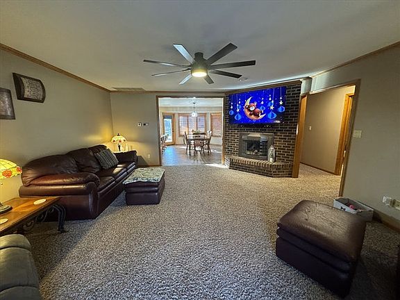 Charming & one level all-brick ranch home with 3 bedrooms, 2 spacious baths, and a cozy gas fireplace in the living room. The bright, open kitchen and dining area boast ample cabinets, countertops, an island, and an eat-at bar. Walk-in pantry, coat closet, and extra storage throughout. The master suite features a large room, walk-in closet, and private bath with double sinks, shower, and tub. Designated utility room with built-in ironing board. Oversized attached garage with storage and a versatile bonus room. Beautiful level yard, front patio, large partially covered back patio, garden shed, and ample parking on a quiet street. Call or text Sonja at 660-651-4107 for your showing.