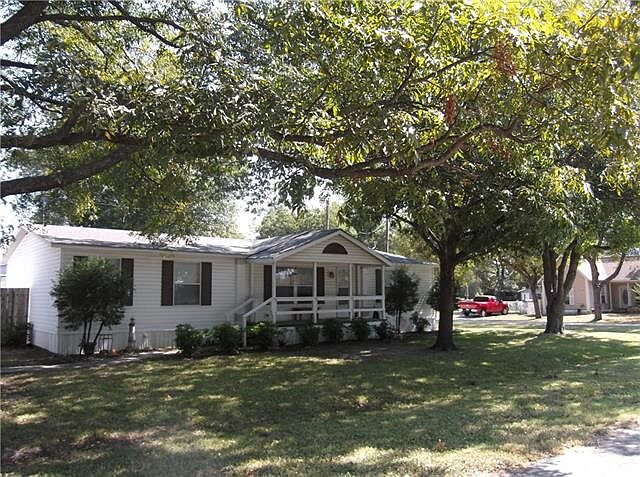 Adorable manufactured home on nice corner lot with large pecan trees. Covered back porch to sit outside and enjoy your morning coffee, or cookouts in the evening. This 3 bedroom 2 bath house is very well kept. Fenced yard with small storage building. 2 car garage with workshop. Perfect starter home! This is going to go quick, so don't miss out!! Washer and dryer and refrigerator is included. New air conditioner installed April 2015