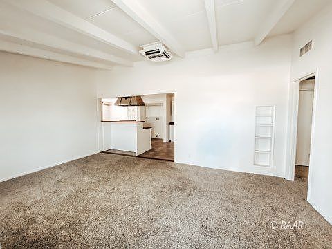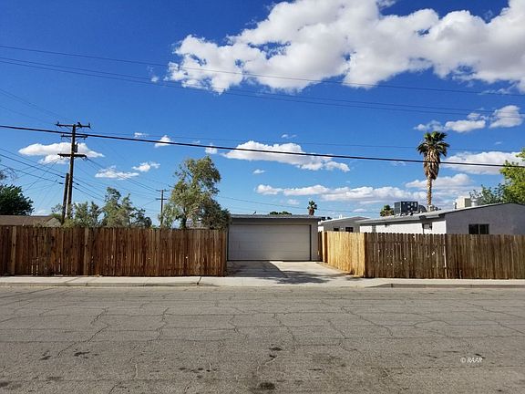 Larger downtown bungalow, 1124 sq ft with Dual cooling. Own this charming home & the whole .17 acre corner lot, completely fenced. You can't miss it look for the tall Palm Trees & landscaped front yard. Stay nice & cool this summer w/a newer dual pack & evap cooler too. There are 3 bedrooms & 1 full bath, open concept floorplan living/kitchen & dining area perfect for entertaining! The front living room is spacious with all of the charm of the tall beamed ceilings. The kitchen is ready for the chef with its butcher block counter tops, newer cabinetry, with a drop hood over the gas/oven range all open w/ a tall breakfast bar overlooking the living area. Adjacent is the open dining space. There is a converted 3rd bedroom on the South side of the home. The family area & all of the bedrooms have newer carpet. Off of the dining room & kitchen is a convenient back door that exits to the the enclosed large yard & pathway to the detached garage. The gigantic back yard is completely fenced w/ a double gated RV parking area next to the garage. Both security & main front doors are newer. This is a great home for that first time home buyer, tons of parking space & move in ready TURN KEY!