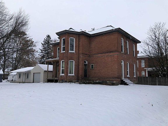 This is one of Bourbon original homes. Two story brick, 5 bedrooms and 2 baths. Both Baths have been updated. Main floor bath has 16 side jets, rain heads, lighting and ceramic tile enclosure. . Kitchen has been updated and has a very large adjoining dining room for those festive holiday dinners featuring bamboo flooring. Family room has nice brick wood burning fireplace. Most new windows, (5 are older). Roof is a 30 year roof and is 2 years old. Upstairs furnace is new in September, main floor furnace was refurbished in 2008. Home is hard wired for the internet. Plumbing and wiring was updated in 2018 in the upstairs bath that houses the laundry. There is an extra 576 sq ft building that was an apartment but has been gutted and ready to remodel as you desire. This home is a work in progress and seller's are continuing to update.