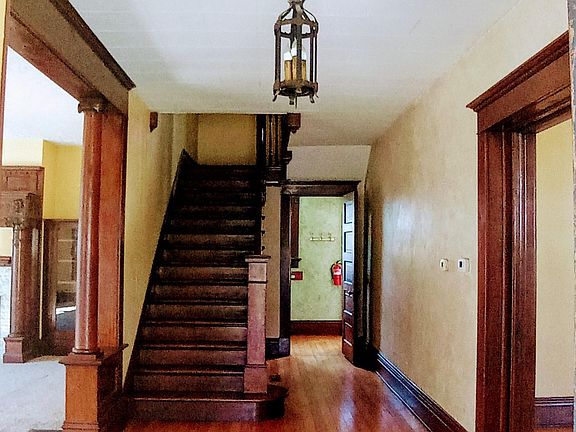 Well known Historic home located in the quiet village of DeGraff. The large front porch leads to the amazing original Leaded glass door. Walk into the grand entrance with original wood work and floors with open staircase and a landing with Stained glass window. Large living room with built ins and fireplace with mantel. Dining room with pocket doors and large windows. Updated Chefs Dream Kitchen with Commercial Range and walk-in pantry. 4 bedrooms all on the same floor make this a family home. Newly added Laundry to 2nd floor and 3rd floor can be finished for additional living space also rec room space in the basement. Front and rear staircases. Supplemental heat is whole house wood burner.