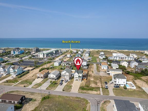 Rarely used and in impeccable condition, this second home is a true gem. With its pristine appearance, it offers a turnkey opportunity as a primary home, second home or rental-ready property. The property boasts stunning ocean views and is conveniently situated just steps away from two beach accesses, as well as a variety of restaurants and attractions such as the Wright Brothers Memorial. Practicality meets convenience with a large carport and a dry entry providing ample storage space. The lower level is designed for relaxation, featuring a spacious den and a fully-equipped rec room complete with a pool table with and easy access to the outdoor space. Outdoor amenities include a private pool, refreshing outdoor shower, convenient grilling area, inviting hot tub, and an expansive backyard, creating an ideal space for entertainment and relaxation. On the mid-level, you'll discover two generously sized bedrooms that provide access to a covered deck, allowing you to soak in the picturesque views. These bedrooms consist of a Queen room and a highly sought-after full-over-twin bunk room with a trundle, both sharing a well-appointed full bathroom. Completing the mid-level is an additional en-suite bedroom, boasting a spacious layout, a king-sized bed, and its own private covered porch. The laundry facilities and wide hallways enhance convenience and accessibility. The top level is where the magic happens, with an open-concept living area, complete with luxury vinyl plank flooring, high ceilings and tons of windows maximizing the breathtaking views. The massive deck space, outfitted with stained decking, offers the perfect spot to unwind and enjoy the coastal surroundings. Indoors, the separate dining area and upgraded kitchen with an island and top-of-the-line appliances provide a delightful culinary experience. You will also enjoy a private spacious King En-suite with a breathtaking view of the Wright Brothers Monument. With both beach accesses just steps away, this property presents a remarkable opportunity to fulfill all your beach dreams!