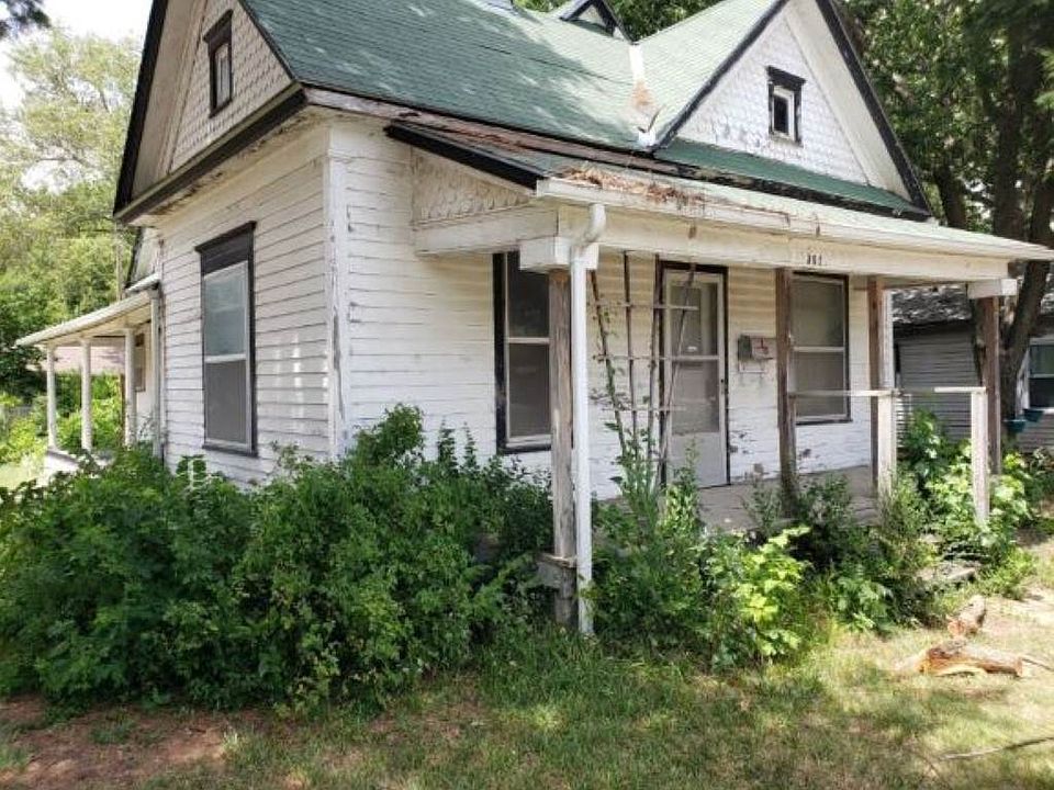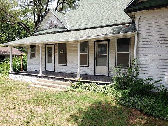 This is a great chance to restore a bit of history. 2 Bedroom home with wide base boards throughout the house. The trim details around the doors are outstanding. Twin pocket doors need a little work but they are intact. The is a new gas furnace in the attic with duct work in place. The home has a detached 2 car garage in good condition. Roof on garage appears to be in good shape. room sizes are approx. Selling as is.