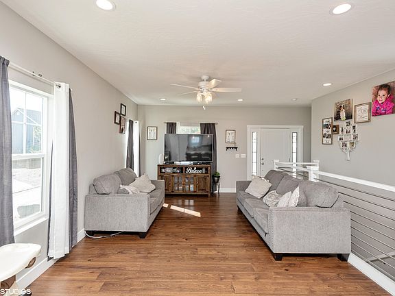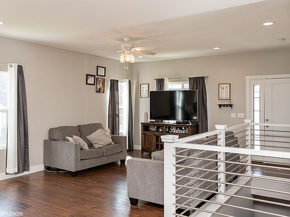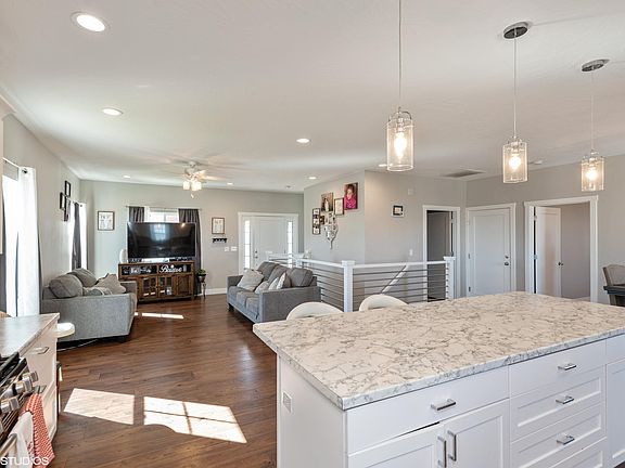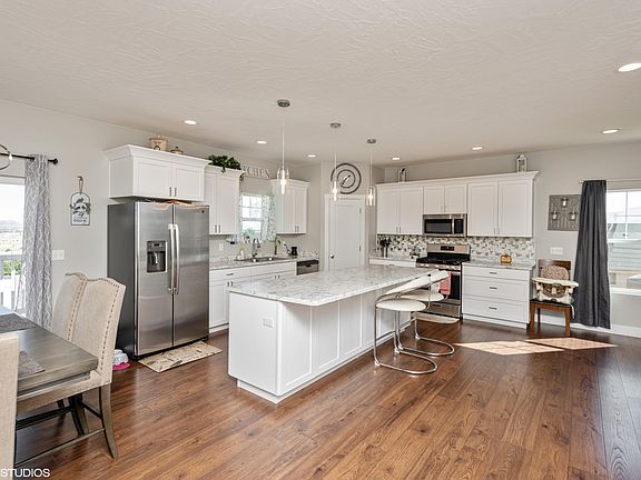 This show stopping home is waiting for the right family. Convenient Cedar City location. The open floor plan is complete with laundry, master bedroom & 1/2 bath on the main level with large kitchen island, back splash, upgraded white cabinets with LVT flooring. Finished basement includes 2 bedrooms, 1 bathroom and living area. Beautiful views including incredible sunsets. HOA maintains the yard and removes the snow.