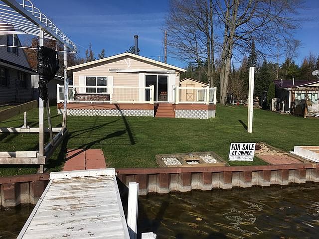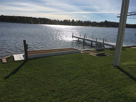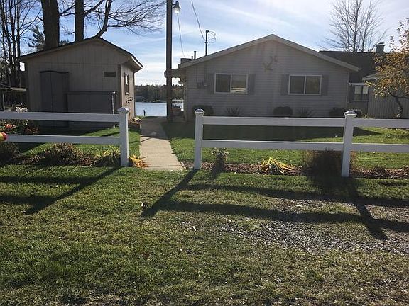 Looking for a Private setting on an All Sports Lake, with a sandy swimming area, 2 docks, campfire pit on level property with no stairs? Well this house is for you! There is a built in hot tub on a 28'6"x16' composite deck with an electric awning. Lake house has had many updates, bathrooms, bedrooms, kitchen. Plus we have installed new hot water tank, water softener, furnace, sump pump and well. There is a 14'x10' shed great for storing gardening, boating and summer items. Across the street is another shed 20'x12' for lawn equipment, seasonal furniture, etc. There is also the 28'x36' garage which has natural gas and A/C, plus a bathroom, workshop 22'x10', two bedrooms and 2 cars. There is extra room for parking, boat storage and camper hookup. Both properties have dusk to dawn lighting.