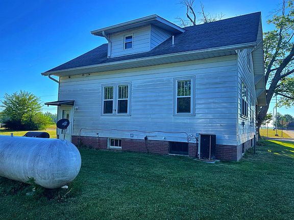 Great starter home located in quiet country town! Very well maintained and efficient 3bed/2bath home with newer roof and furnace on a large lot in town. Ready for a fenced in yard for dogs and kids to run, or plenty of space to build a garage, or both! Newly sided and roofed shed on property to store lawnmower, etc. Interior has beautiful hardwood floors with handmade wood moldings. Windows have been reinsulated for efficiency. New front porch! Clean basement. Perfect for a small family! Low utility costs! 3D Tour available!