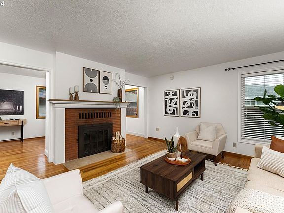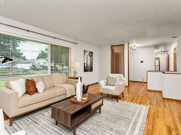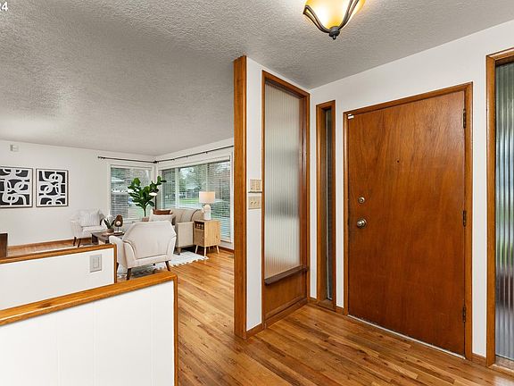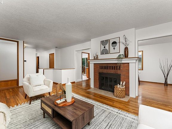 Solid mid-century ranch with potential for ADU with a separate entrance or multi-generational living. Spacious rooms and extensive main level hardwood floors. Large eat-in kitchen with island, double ovens, abundant cabinetry and slider to yard. Roomy living room with wood-burning fireplace and large picture window. Two staircases to lower level, which features comfortable family room with wood-burning fireplace, kitchenette, bonus room with built-ins and two bedrooms. Three additional bedrooms on main level. Nice size, fenced, level backyard. Oversized two car garage plus RV parking. Solid systems, including 2016 furnace, 2014 roof, 2018 gutters and 2019 garage door. New interior paint (2024) and carpet (2023). Quiet street close to Glendoveer Golf Course. [Home Energy Score = 6. HES Report at https://rpt.greenbuildingregistry.com/hes/OR10044516]