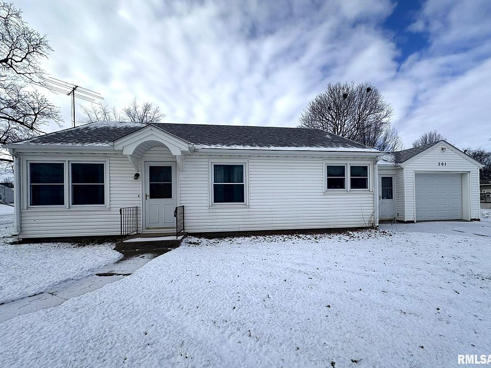 Adorable & efficient 2 bedroom, 1 bath ranch home perfectly placed on an adequate corner lot! With abundant natural light and an open, flexible layout, the oversized living room/informal dining combo creates an ideal place to host gatherings. Ample oak cabinetry in the welcoming kitchen provides enough space for all your storage and organization needs. Retreat to either of the sizable bedrooms featuring double closets in the primary both conveniently located on either side of the full bathroom. Continue to enjoy single level living with desired main floor laundry and utilities. You will appreciate the easy transition from outdoor to indoor living through the attached 1-car garage and enclosed breezeway. Bring your choice of paint & flooring and allow your creative vision to transform this home into an easy to maintain property. Make your appointment today!
