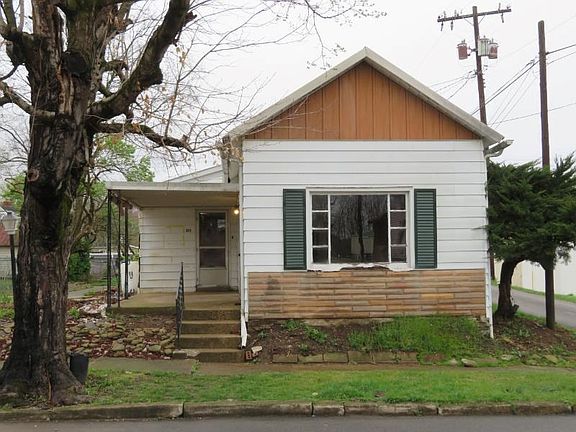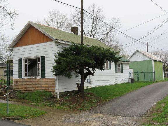 Stone & aluminum sided one-story home on a corner lot! 2 BR, 1 BA floorplan! Eat-in kitchen w/wood cabinets & tile backsplash, living room w/wood panel walls! Covered front porch, rock & flower garden, wood frame storage barn! Affordable living or investment property! Immediate possession!
