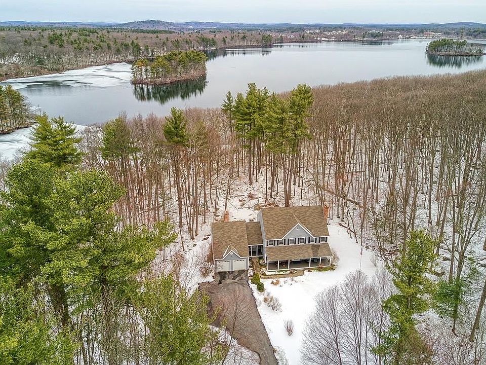 This peaceful, private waterfront oasis has breathtaking views of pristine Nagog Pond Reservoir. It is a naturalist's dream! An unexpected move prompts owners to sell this one in a million offering. Conservation land, sprawling lawns and beautiful gardens surround this custom built Southern Style Colonial. Inside, a beautiful cherry kitchen with granite countertops, large walk-in pantry, wet bar & separate dining area opens up to a striking family room boasting soaring ceilings, floor to ceiling fireplace, woodstove and huge picture windows that showcase the serene water views and private woodlands. An enormous finished walk-out basement features a full bath, new cork flooring, a wet bar and work area with sliders out to a stone patio overlooking the waterfront. Additional recent updates include specialty lighting, improved landscaping, hardwood flooring in family room, and freshly painted interior. Minutes to South ActonTrain Station, Rt 2 or Rt 495. Wow!!!