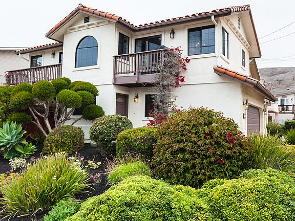 Spanish Colonial Revival 3 Bed 2 Bath home perched along an ocean-view ridge with sweeping vistas of Morro Bay. This home is designed to seamlessly blend indoor and outdoor living with a lush front garden designed by a Certified Master Gardener. Enjoy spectacular ocean views from the intimate terraces and relax on the patio in the Cal Spa hot tub. The elegant interiors include a spacious great room with an open floor plan. Natural light floods the great room through a clerestory window. A well appointed kitchen complete with an oversized island (w/seating) and dining area is perfect for entertaining. Sleep in comfort in an ideal master bedroom suite boasting a private ocean-view terrace, walk-in closet, dual sink vanity and private washroom. There are also two guest rooms - one with private entry and patio access. This home can comfortably accommodate families and groups of friends; it is the ideal two-story vacation home for relaxing and entertaining.
