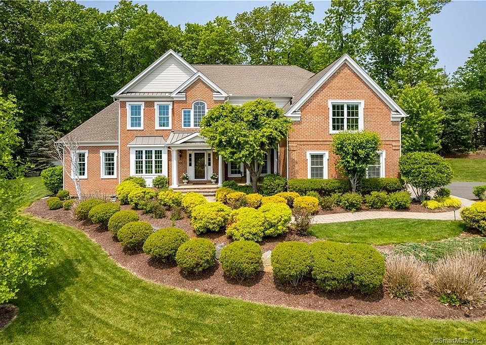 Located in one of Avon, CT’s most desirable neighborhoods, this HOBI award winning home was built with extra attention to detail and style! With incredible street presence, the home is perched on the western ridgeline of town and offers modern living with timeless design. Guests are welcomed by a paver walkway, covered porch, and grand two-story foyer. The heart of the home is the expansive eat-in kitchen that is open to the two-story family room with fireplace. A handsome study features built-in bookshelves and cabinetry. Details throughout the house can be found in extensive crown molding and wainscotting, inlaid wood flooring, and other stylish accents. The primary bedroom suite is a dream, complete with sitting room and extraordinary en suite bath with dual walk-in closets. The four bedrooms of the upper level connect by a hallway bridge marked by wrought iron balusters with views of the foyer and family room. A 3rd level of above grade living space houses an office and bonus room. The finished lower level includes a large den area with custom built-ins, full wet bar, wine room, full bath, and 5th bedroom with secondary egress for safety. The outdoor space is lush and features a patio area with built-in grill and outdoor gas fireplace. Located 30 minutes from Downtown Hartford and just 2 hours to both NYC and Boston, Avon is ranked as one of the best places to live in CT. See the fully interactive 3D virtual tour or schedule your in-person showing today!