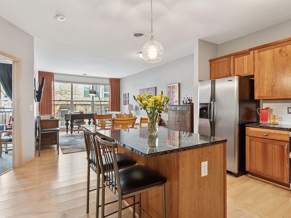 Experience the best of city living in this sleek and stylish loft-style two bedroom and two bath condo at 301 Oak Grove Street in vibrant Loring Park! With soaring ceilings, an open layout, and oversized windows, this home is filled with natural light. The spacious kitchen is a dream for both cooking and entertaining, featuring ample storage, cabinet pull-outs, and a center island. The primary suite offers a generous walk-in closet and a private ensuite bath, while the in-unit laundry room adds extra convenience with bonus storage space. Tucked away on the quiet side of the building, Unit 206 provides a peaceful escape with serene views of the landscaped courtyard, the historic 300 Clifton grounds, and the charming trolley. This well-maintained community boasts fantastic amenities, including a fully equipped fitness center, a stylish resident lounge with a balcony, a private fenced courtyard, and secure underground parking with additional storage and guest parking.