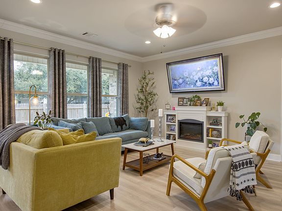 The split floor plan offers privacy, with two guest bedrooms situated around a full bathroom. One of the guest rooms features a walk-in closet for extra storage. On the other side of the home, the extra-large primary suite serves as a private retreat, complete with a walk-in closet and a luxurious soaking tub.