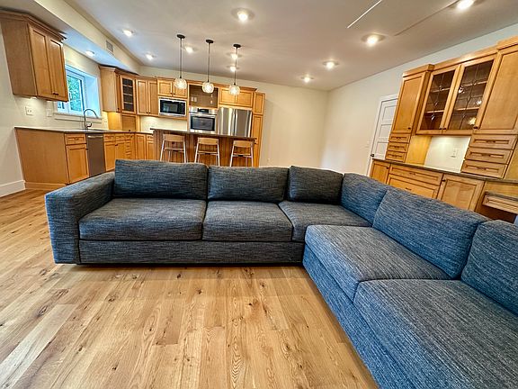 Spectacular, one-of-a-kind apartment, is located in the heart of Guilford, CT within close walking distance to the Metro North train, serving New Haven, NYC, Hartford, and Boston, and a short stroll to downtown Guilford and its vibrant Town Green, surrounded by restaurants, shops, the Library, etc. It's also within walking distance to the town beach, marina, a farmer's market held on the Guilford Fair Grounds, and the Westwoods nature trail system. The 2nd-floor apartment is attached to a newly built award-winning "Green Home '' that has its own private entrance and oversized 1 car garage with washer/dryer. From the moment you step inside, you'll notice how unique this bright and spacious apartment feels. In addition to being extremely clean, comfortable, and quiet, the apartment has superior indoor air quality due to a 24-hour filtration system. The main living space features a beautiful wide-plank oak hardwood floor, complemented by a luxury custom kitchen with new high-end appliances, granite countertops, a breakfast bar w/stools, built-in bookcase, and an additional wall of cabinetry for storage and a built-in desk. The dark gray sectional couch shown in the photos is included. The bathroom features a walk-in-tiled shower and a bath vanity with a matching mirrored medicine cabinet for ample storage. The bedroom comes with a new 6-drawer dresser, a carpeted floor, and a large walk-in closet and also. The apartment is situated on a property that has a pollinator meadow for a front lawn and vegetable gardens, available for sharing.