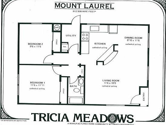 NOW Including A 13 mo. HWA Warranty This "Mt. Laurel" Model (912 Sq Ft) Home Is Priced To Sell & Available For Quick Settlement!Features: 2 Bedrooms1 BathroomFRESHLY Painted ThroughoutNEW Kitchen FlooringRefrigeratorElectric StoveWasher/DryerALL Window Treatments (Incld)10 x 14 SunroomNEW Roof & Sunroom Roof (2009)Central AirGas Heat8 x 8 ShedCall TODAY To Schedule An Appointment To See This Home! It Won't Last Long At This Price!