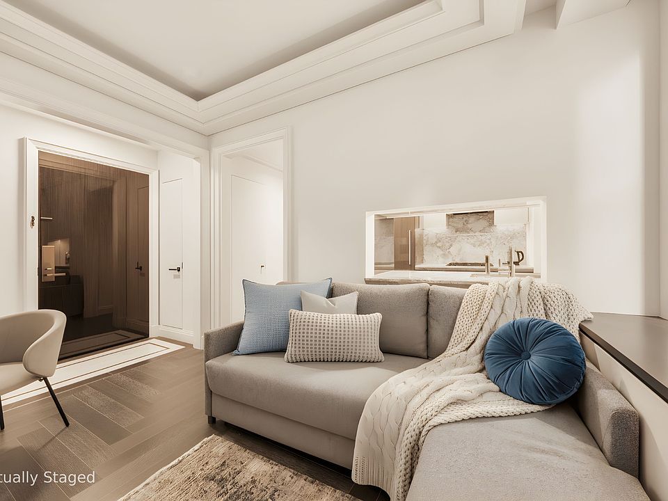 Experience timeless sophistication at the Waldorf Astoria Residences New York. Residence 1918 is a beautifully designed studio featuring a thoughtfully placed partition wall that creates the ambiance and comfort of a one-bedroom home.