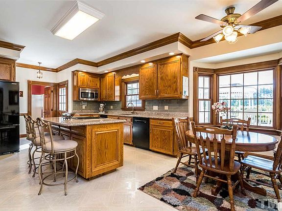 Large walk in pantry. Hardwood floors in formal dinning room custom made from lumber taken from a railroad station and put in place with wood pegs - no nails. Bath in master bedroom has a garden tub jacuzzi. Wine celler. All closets on main floor (3) are large walk ins. 3zone heating/ac.
