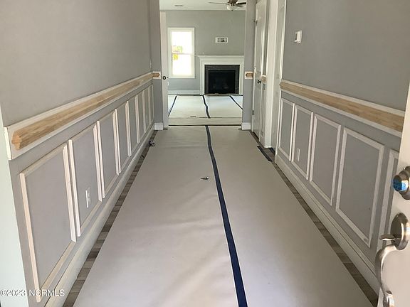 2 additional bedrooms with hall access to full bathroom with vanity, tub/shower combination with tile surround, and tile flooring.Laundry room/Mudroom in garage entry with coat closet, built-in bench and cubbies, washer/dryer connections, and tile flooring.2-piece crown molding in the foyer.Durable luxury vinyl plank floors in the foyer, kitchen/dining area, great room, and Carolina room.Low-maintenance vinyl siding with shake and board and batten accents, and stone skirt; Dimensional roof shingles with matte black accent metal roofing.Front porch with front door painted in Sherwin Williams ''Outerspace'' with transom window.