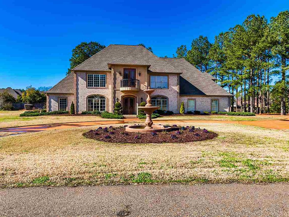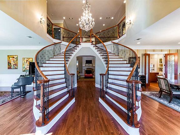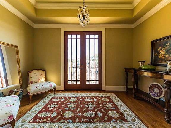 Pristine in a gated community! This gorgeous home features an almost acre corner lot, circular driveway and water fountain in the front yard. A pergola with a loaded outdoor kitchen and hot tub take relaxing and entertaining just outside of the sunroom. Inside, dual sweeping staircases, vaulted ceilings, fireplaces, formal dining room and chandeliers escalate the level of luxury. Chef's kitchen with Viking appliances and built-in refrigerator and breakfast nook. Upstairs there are 3 bedrooms, an office, exercise area and a media room. Upgrades and luxury abound with the convenience to local shopping and interstate.
