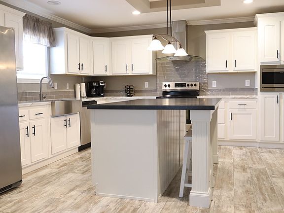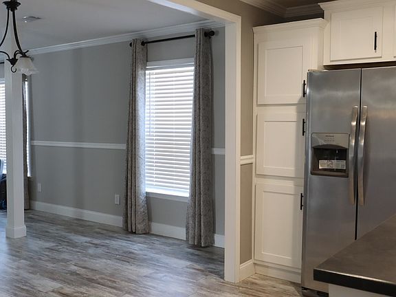 Beautiful 4 bedroom 2 bath mobile home that sits on 5 acres. This mobile home is stunning with a den and living room, modern kitchen, large master bedroom plus large walk in closet. The master bath has a tub and a separate shower. The kitchen has white shaker style cabinets, beautifully done island with seating. All appliances are included. There is a separate washroom with shaker style cabinetry. The washer and dryer is included. This home has an above ground pool. There is also a She Shed or man cave with Kitchenette and bathroom. The home has a storage container that comes with the purchase. Call and schedule your tour of this beautiful home today! It will not last!