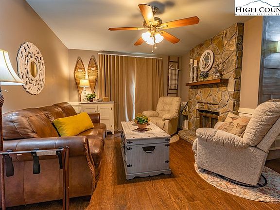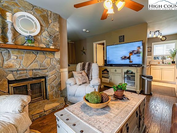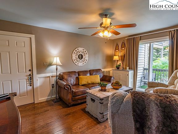 Renovated condo on Beech mountain with wood and tile floors, full tile shower, stainless appliances, wood fireplace and a large screen television. This end unit allows for an extra window with views toward Grandfather and sunrise. It is being sold fully furnished and turnkey. Come sit on your deck and enjoy sunrises in the cool 5,100 elevation. Lucrative rental history for almost 5 years. From Pinnacle you can walk to downtown Beech Mountain, sledding hill, the dog park, "Fred's" or hit a couple hiking trails. Pinnacles onsite amenities: pool, wet/dry sauna, hot tub, mini arcade, fitness area, picnic tables, grills, tennis/pickleball, frisbee golf, bocce ball. A 3 minute walk to the dog park, city playground and outdoor adventure wall. Buildings were renovated with new roof, windows, doors and vinyl siding in 2015/16.