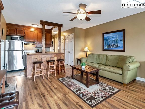 RENOVATED AND TURNKEY 3rd floor SKI SUITE with LONG RANGE LAYERED VIEWS. GREAT INVESTMENT OPPORTUNITY…GREAT RENTAL HISTORY. Sleeps 4. Don’t miss out! No updating needed. All of the work has been done! This renovated unit includes custom kitchen cabinets with lots of storage, beautiful millwork, tile kitchen countertop with room for 3 bar stools, updated flooring throughout, queen size bed in sleeping nook, and sleeper sofa. Enjoy the cool mountain air on the porch while gazing at the beautiful long range views. Enjoy all four seasons in this well equipped, FULLY FURNISHED ski suite. Wood burning fireplace is cozy after a day of skiing. PET FRIENDLY and close to the Beech Mtn Dog Park. Owners can have 2 pets. ONLY PAY FOR ELECTRIC. $360/month POA Fee includes water, sewer, internet, cable, trash, local phone & MANY AMENITIES: Indoor pool, hot tubs, fitness, sauna, mini golf, tennis, pickle ball, shuffle board, grills and more! PRIME LOCATION on Beech Mtn & amenities are hard to find! Close to Sledding Hill, Playground, Fred's General Store, Overlook Barn, and dining. Beech Mtn Resort is close for skiing, tubing, ice skating, mtn biking, concerts, etc. Less than 10 min to Banner Elk. This location can’t be beat!