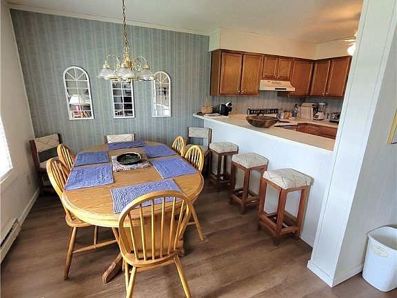 Well kept 2BR large unit that has been in the family for many years. Fully furnished and turnkey with a view of the ski slopes. A recent icemaker line break was professionally mitigated, new LVP flooring installed throughout (except for bedrooms), affected walls painted and now looks like new. Many outdoor amenities including mini golf, tennis/pickleball, party pavilion, outdoor grills and picnic tables, playground, bocce ball and the indoor center for pool, games, saunas, hot tubs and meeting room. Walk to the dog park, downtown restaurants, shopping and outdoor activities such as cargo net climbing tower, mini golf, rock climbing and gem mining. Walking path throughout the downtown area meanders through landscaped borders and seating along the way. The best temperatures in summer, it rarely exceeds 72 degrees - above 5000' in elevation. Highest incorporated town east of the Rocky Mountains. POA fee of $471/mo. includes water, sewer, cable for tv and internet, landline phone and recreation amenities. Just pay electric, taxes and insurance separately. 13th and payments of $250 each are due in April and October each year for Reserves. the due date for the final installment. This assessment covers costs of painting and increased water and insurance costs.